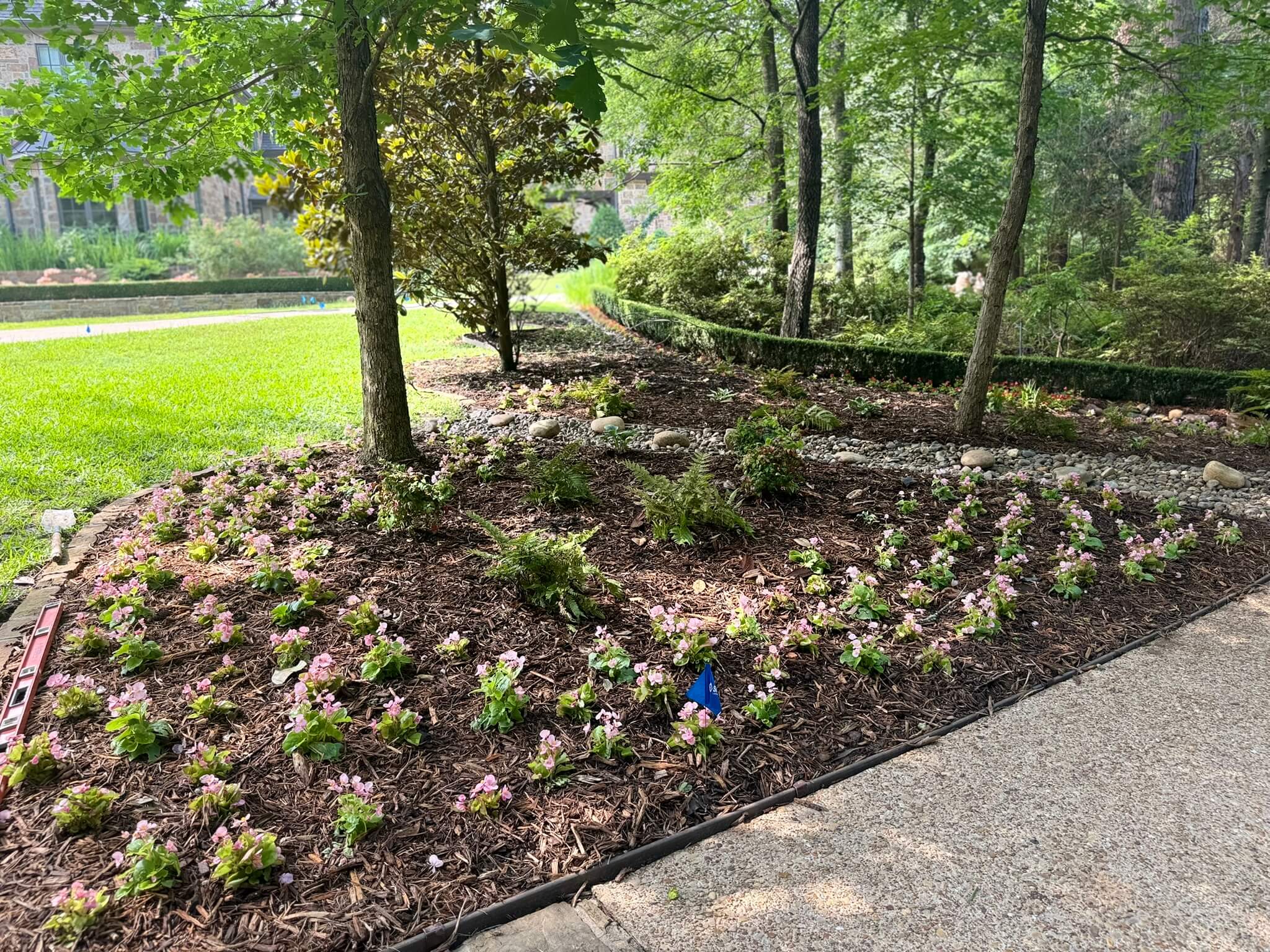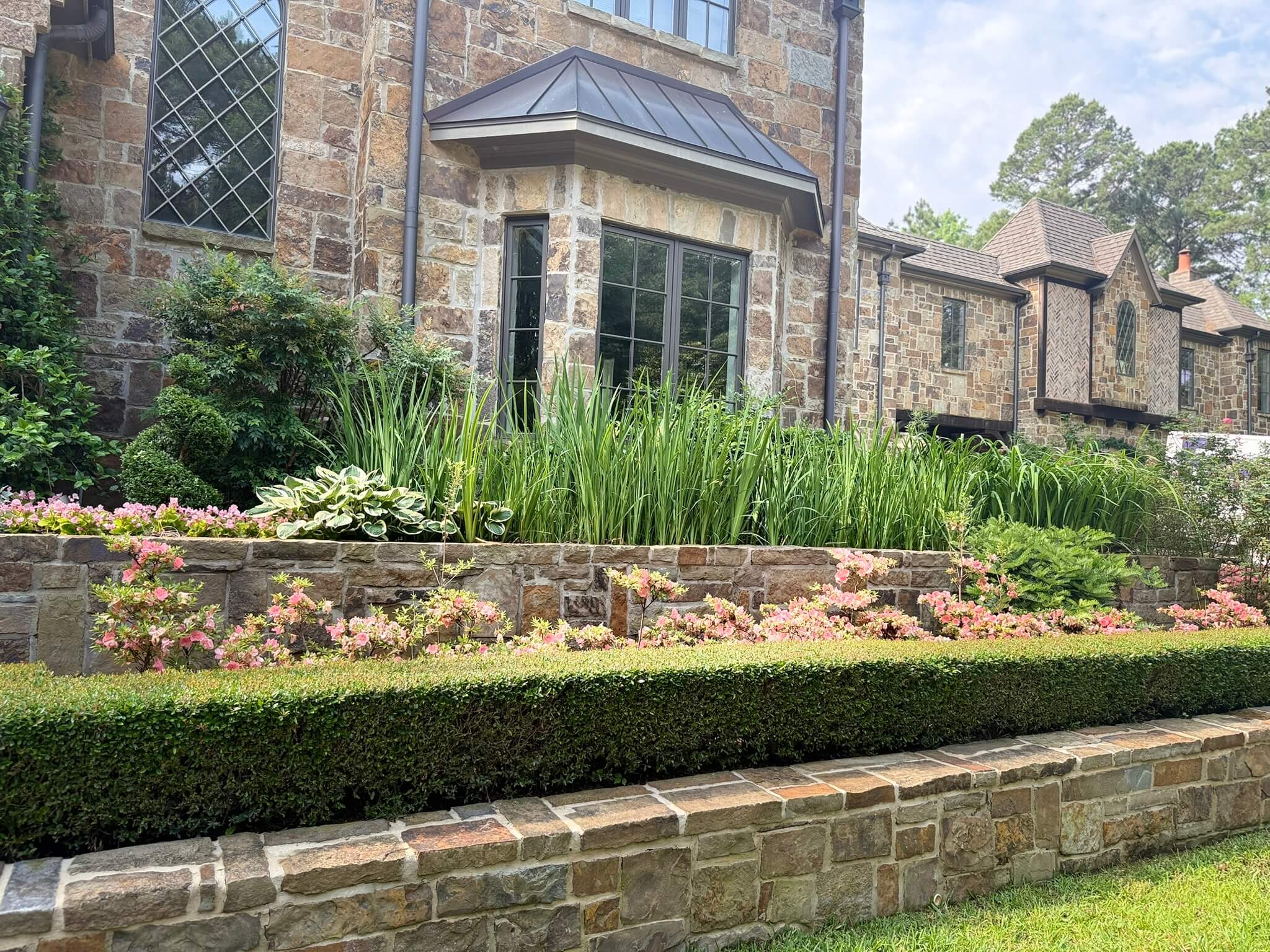 • Multi-color flower beds changing seasonally
